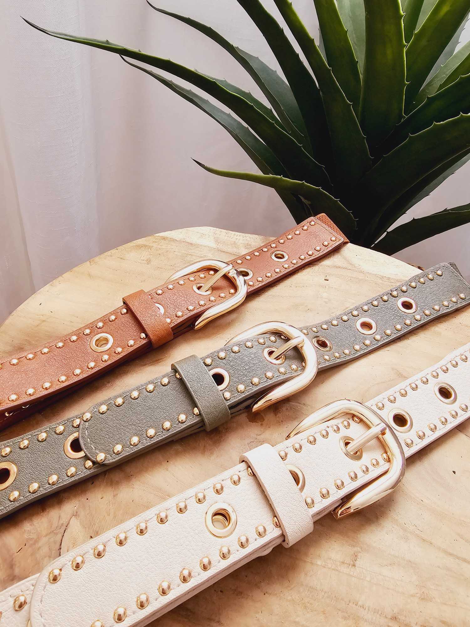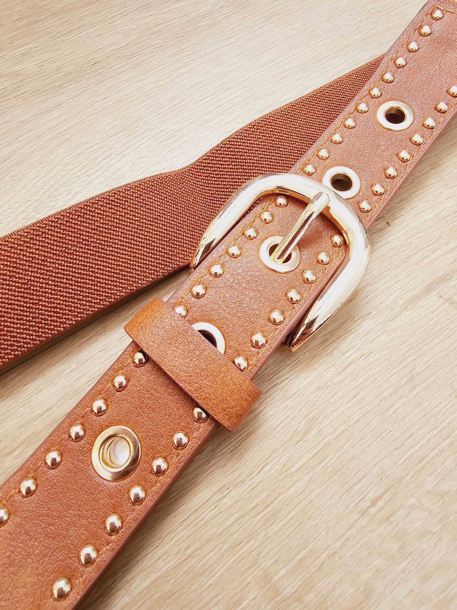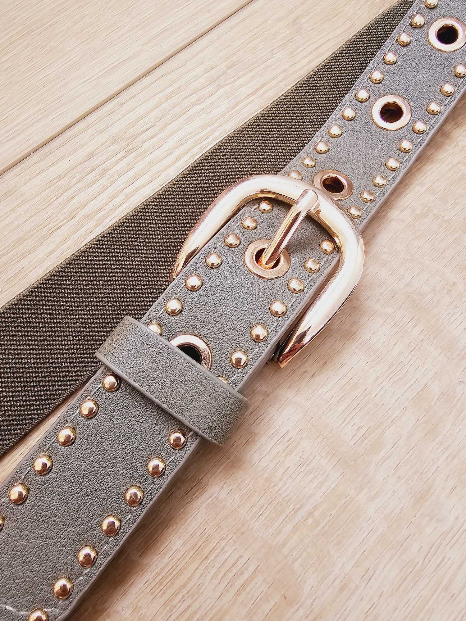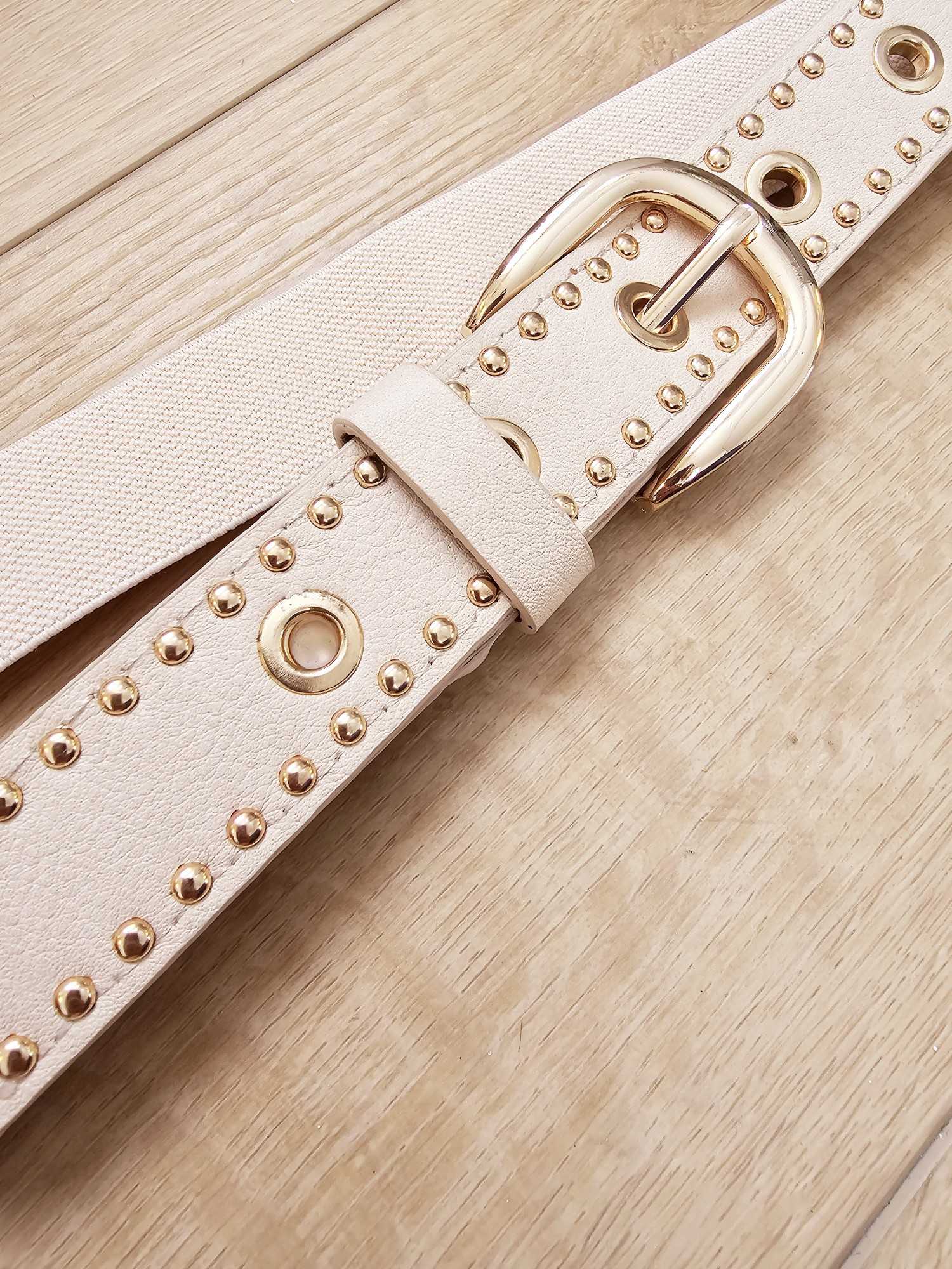 Ceinture élégante et confortable avec dos élastique pour un ajustement parfait… – Boucle dorée – Petits clous d’ornement – Dos élastiqué