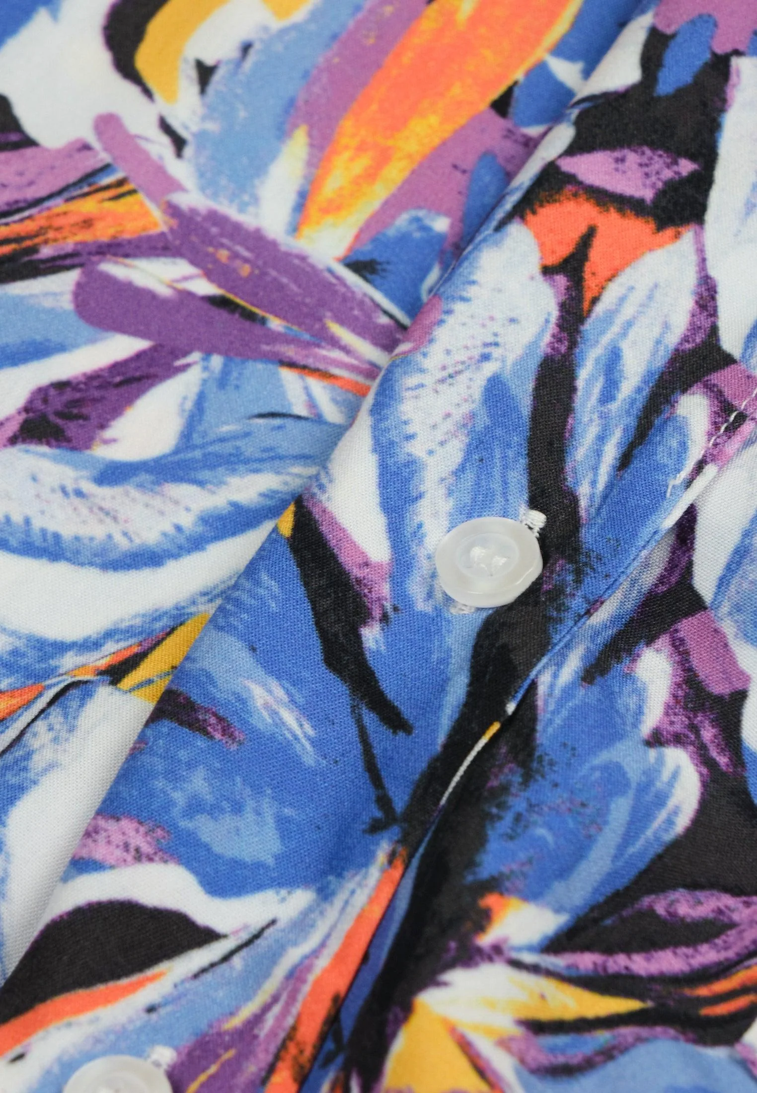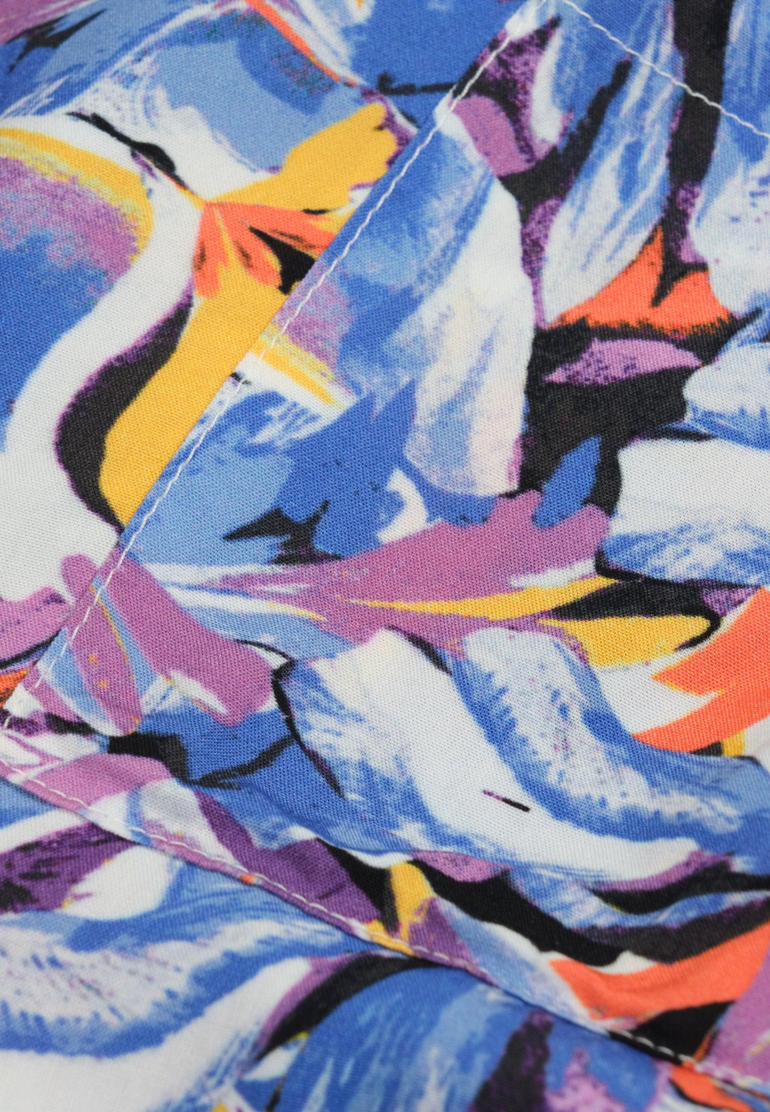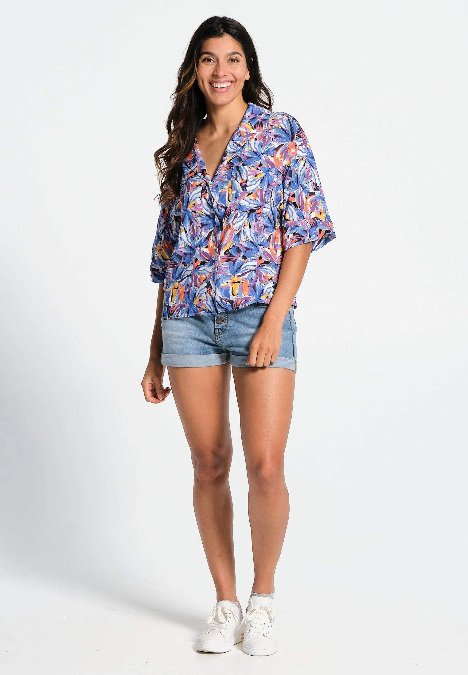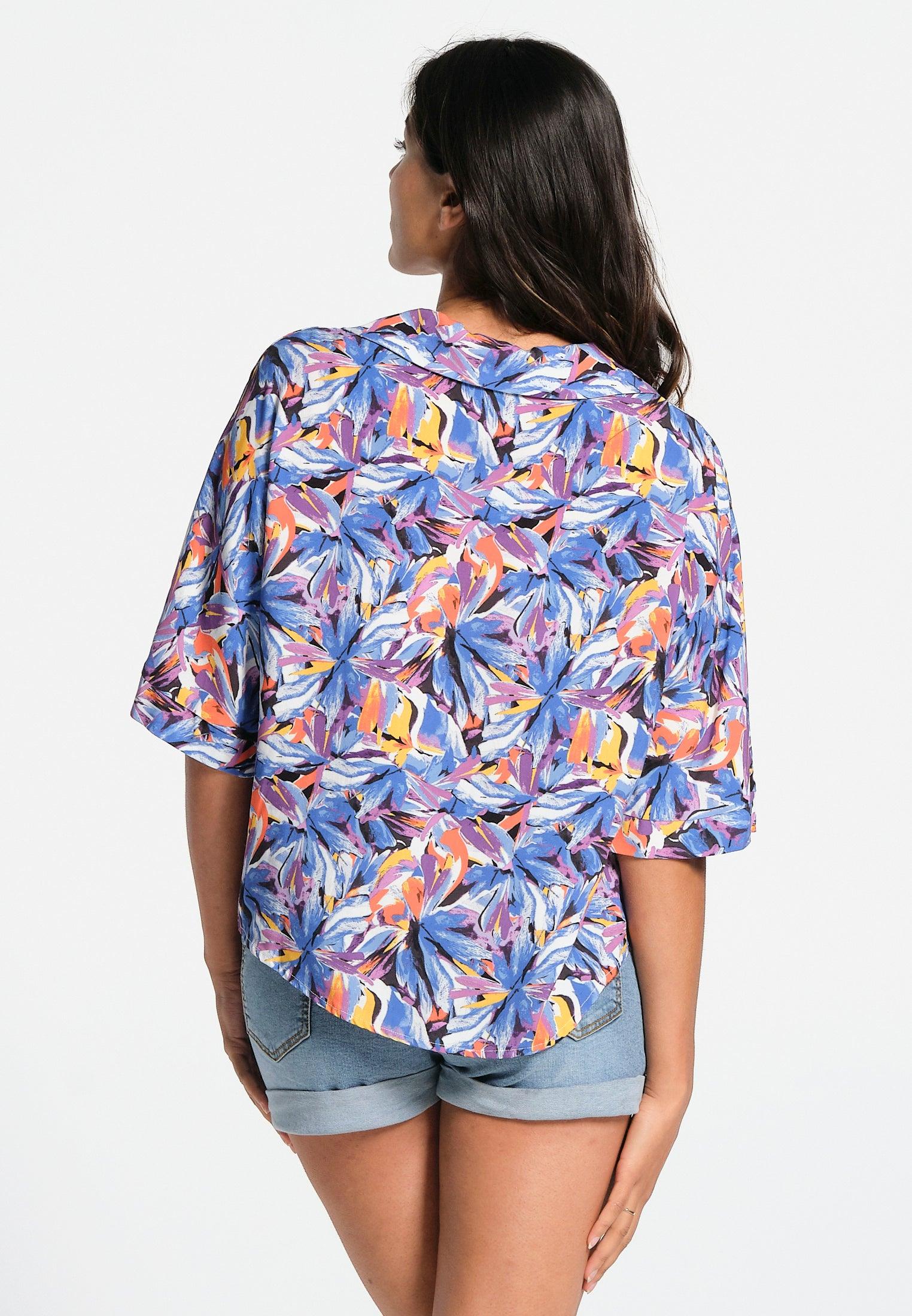Un vent de légèreté souffle sur cette chemise à manches courtes tombantes. La forme du col est en V. La fermeture est boutonnée à l’avant. Elle possède une poche poitrine. L’imprimé représente des fleurs multicolores abstraites. Un modèle doux et joyeux, qui trouvera sans aucun doute, sa place dans votre garde-robe.