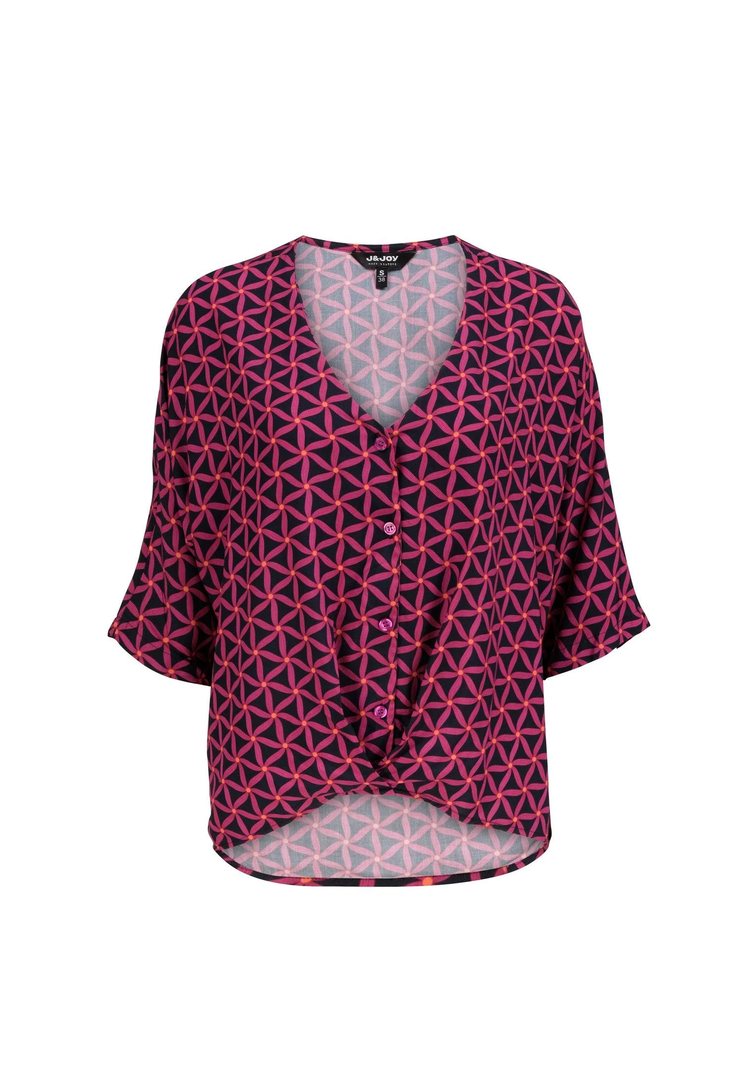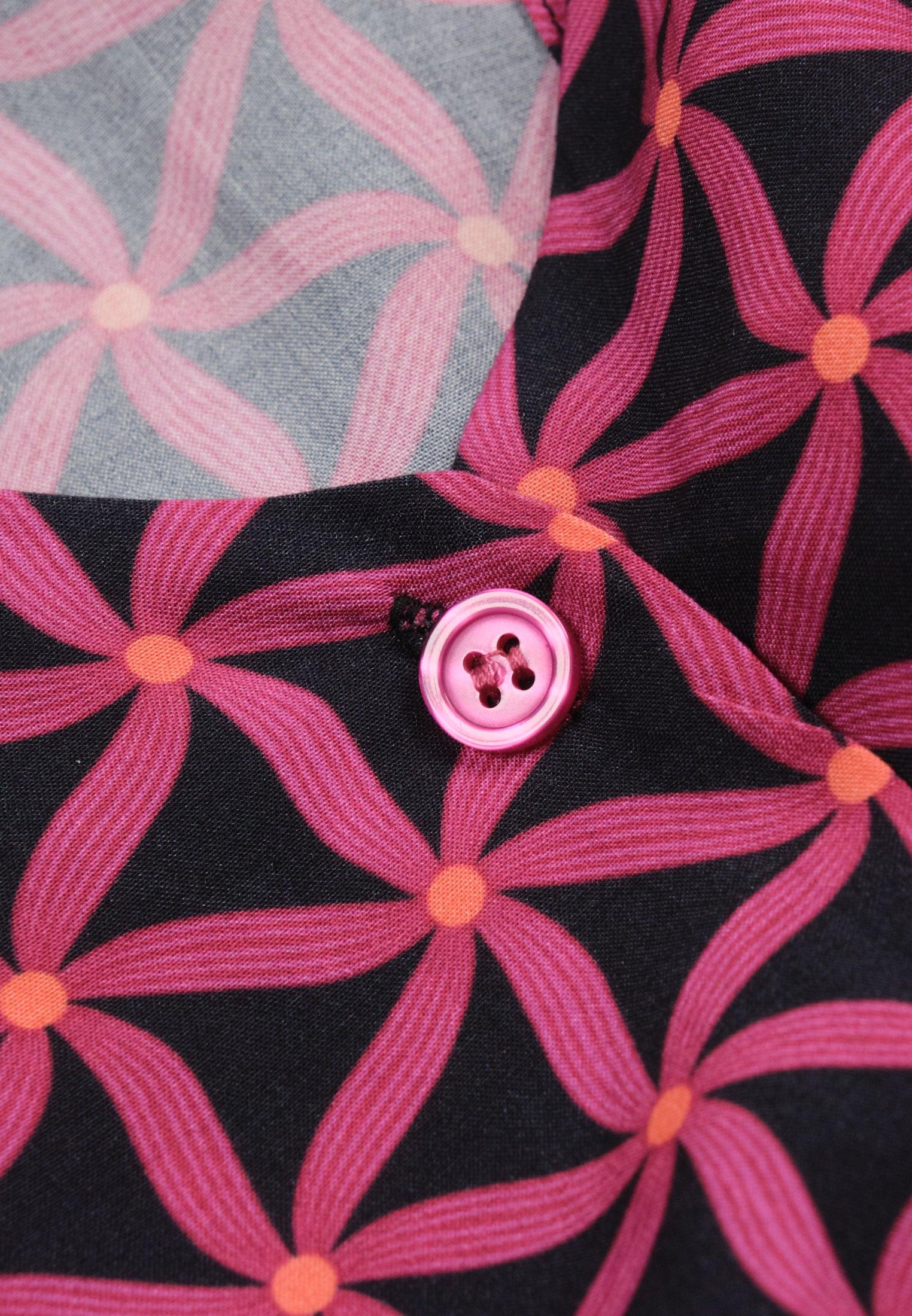 Une chemise tout en légèreté, qu’on aura plaisir à porter durant les chaudes journées d’été. La forme du col est en V et la fermeture est boutonnée à l’avant. Elle présente des manches courtes. Sa coupe est légèrement plus longue à l’arrière. Sa couleur fuchsia et son imprimé « étoile de mer » égaieront votre style.