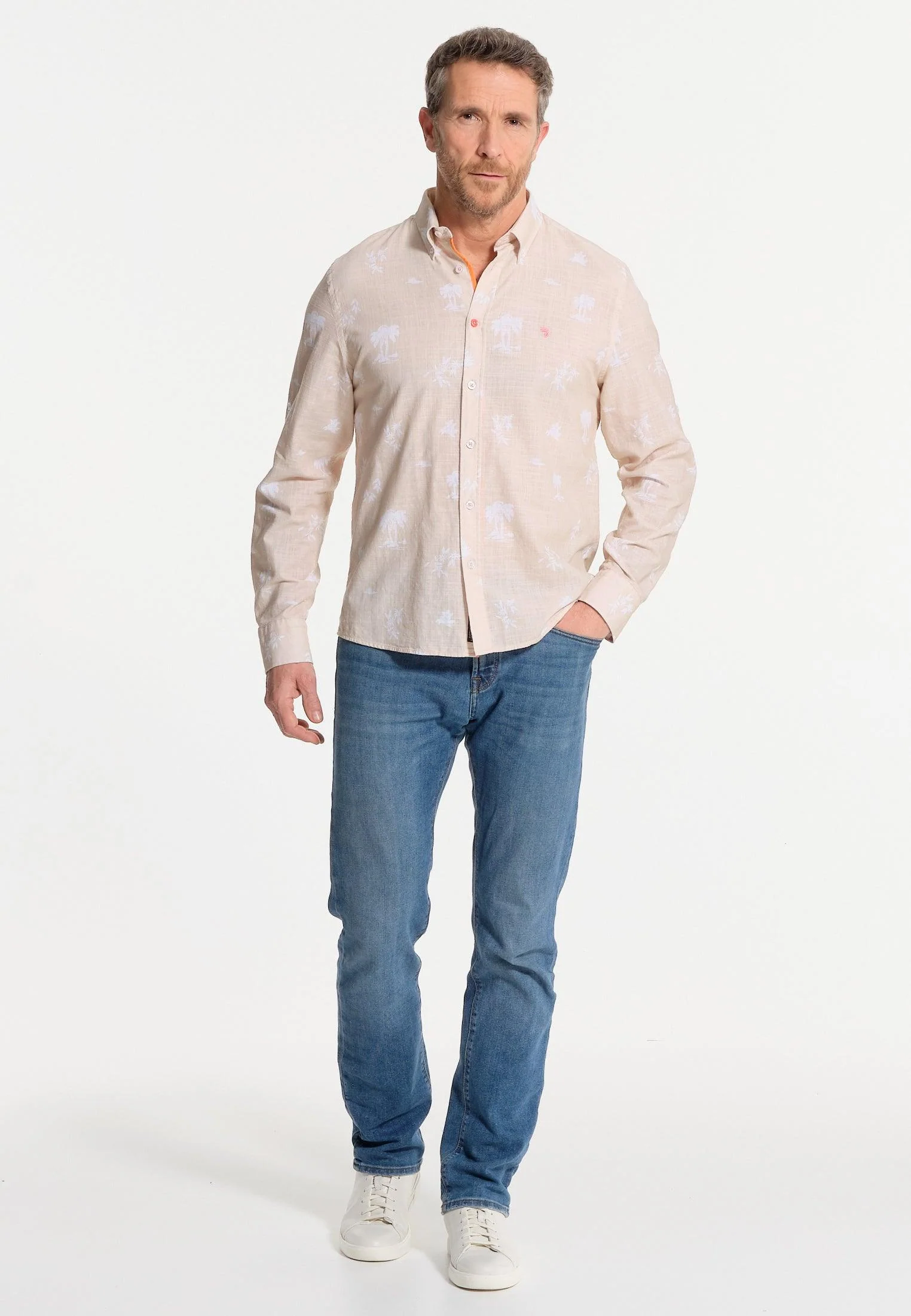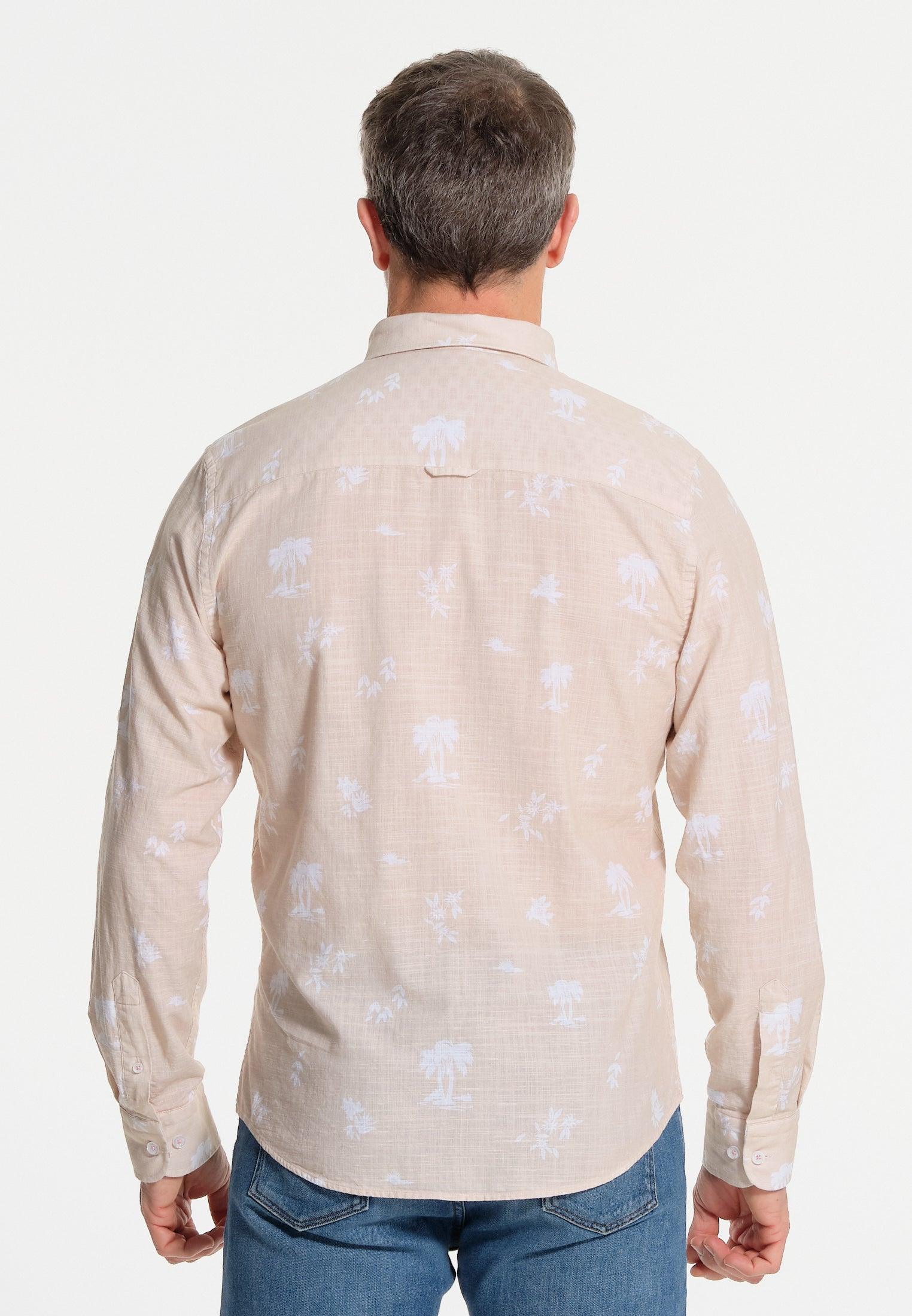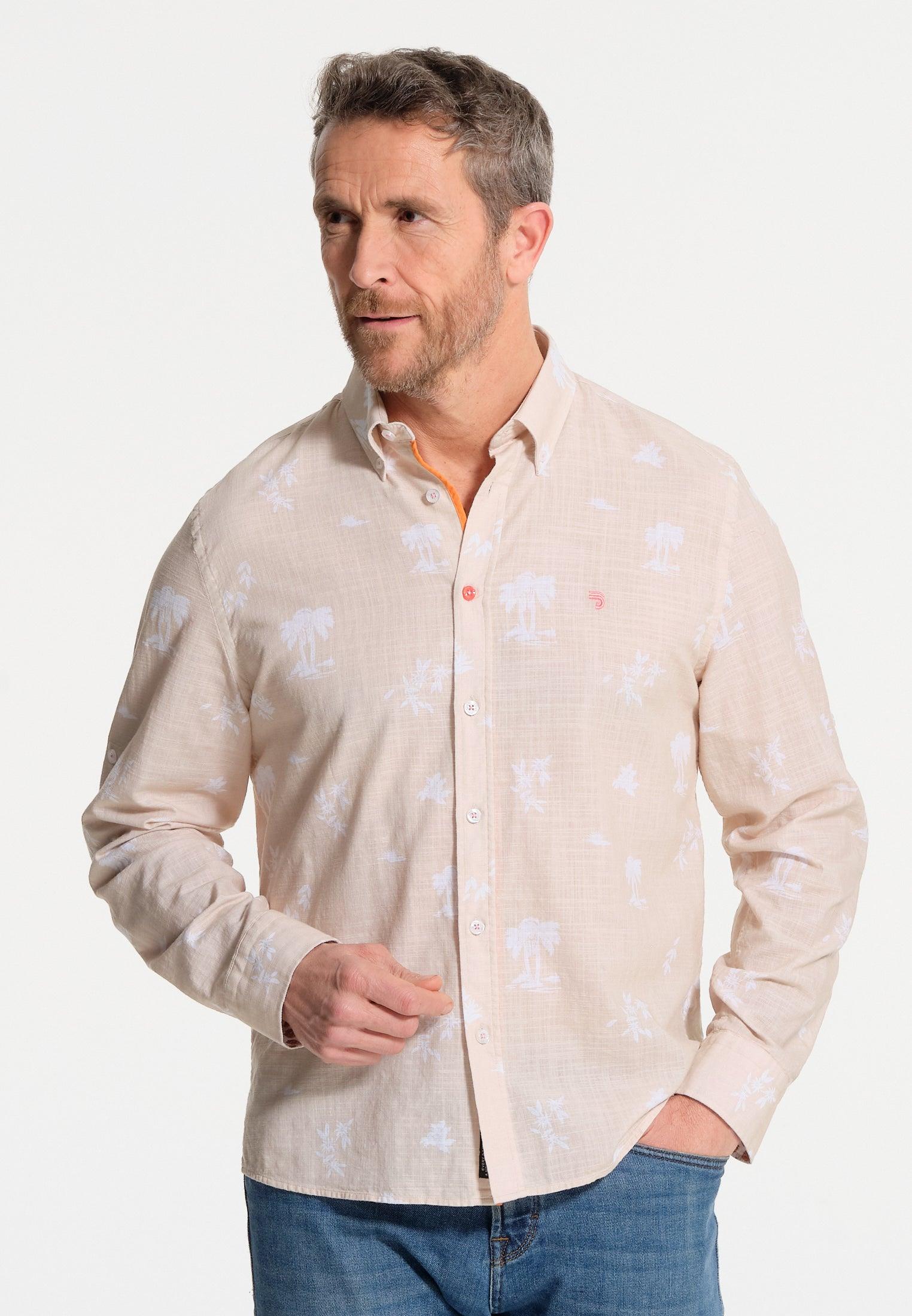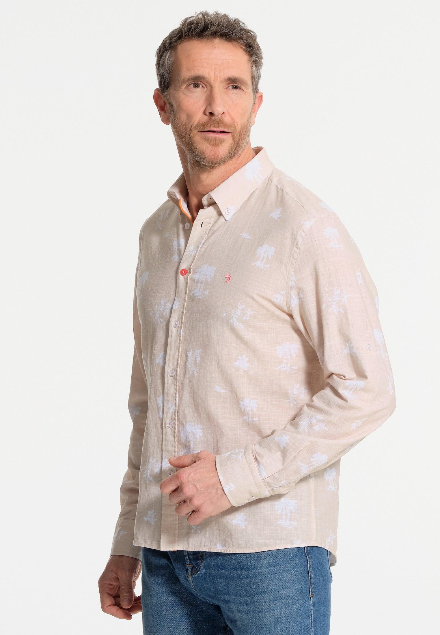 Chemise homme beige imprimés en négatif – effet lin