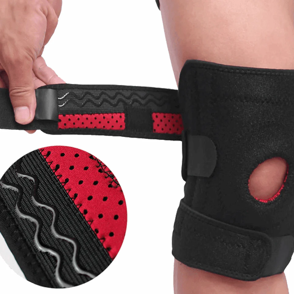 - Bandes antidérapantes : Garantissent un ajustement parfait, empêchant la genouillère de glisser lors des mouvements.