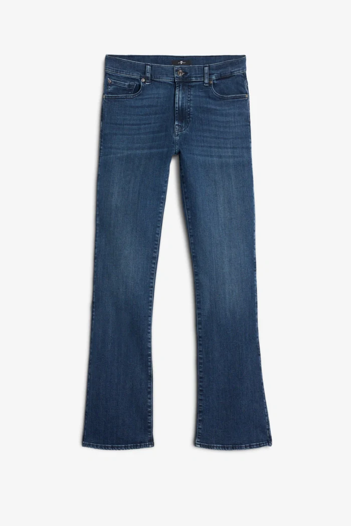 Jeans taille mi-haute qui épouse les hanches et les cuisses et laisse place à une coupe évasée à partir du genou qui allonge la silhouette.