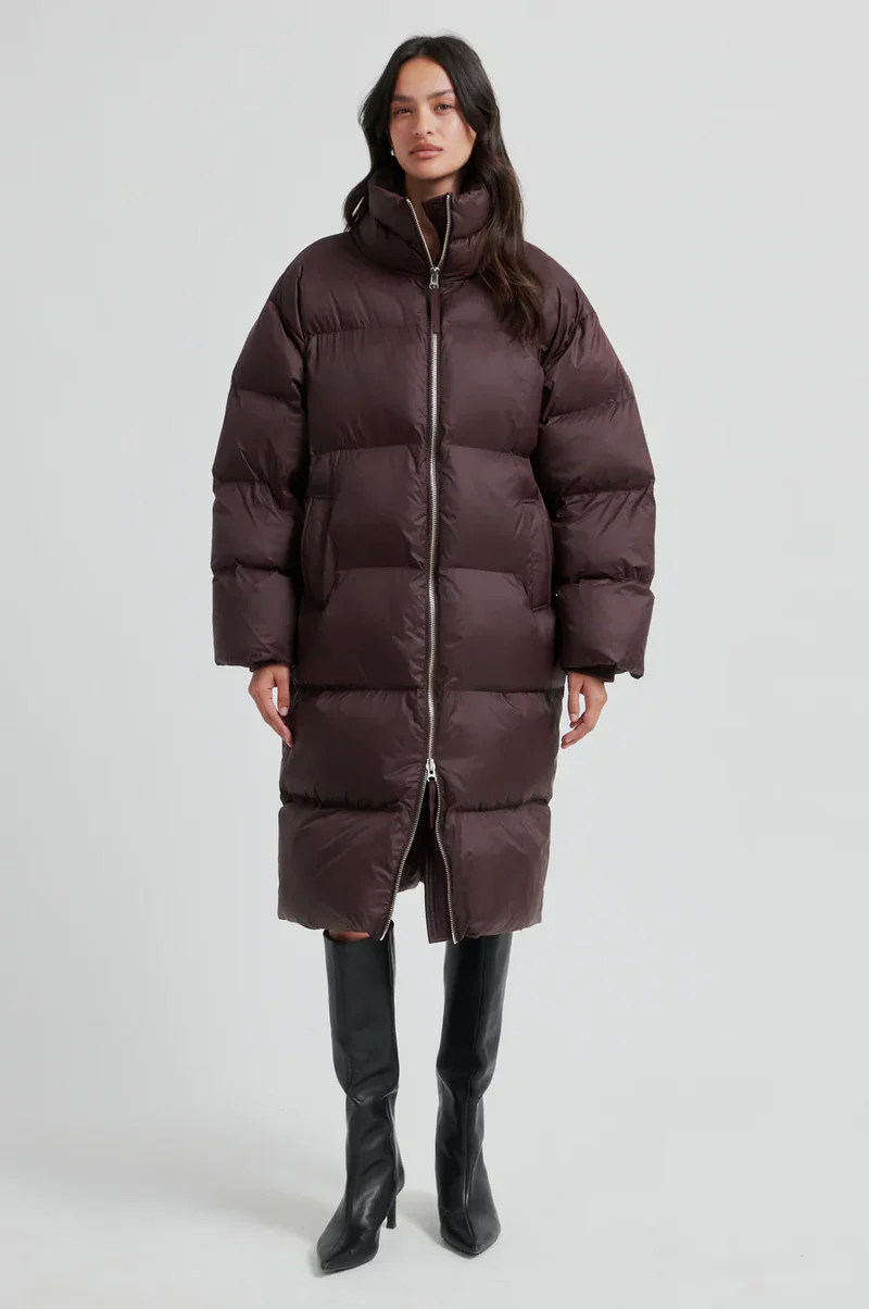 Doudoune longue de la marque Second Female. Confectionnée en tissu lisse avec rembourrage matelassé, elle présente un col montant, une fermeture éclair à double curseur avec protège-zip et deux poches latérales. Épaules tombantes et manches longues avec poignets coupe-vent. Coupe décontractée.