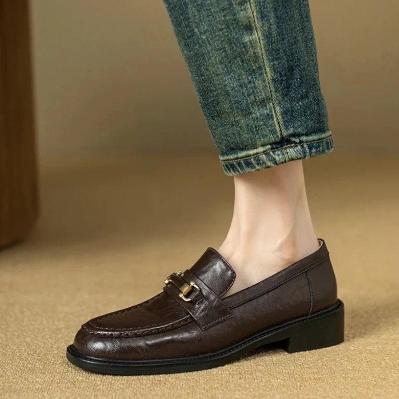 mocassin orthopédique femme à boucles en cuir