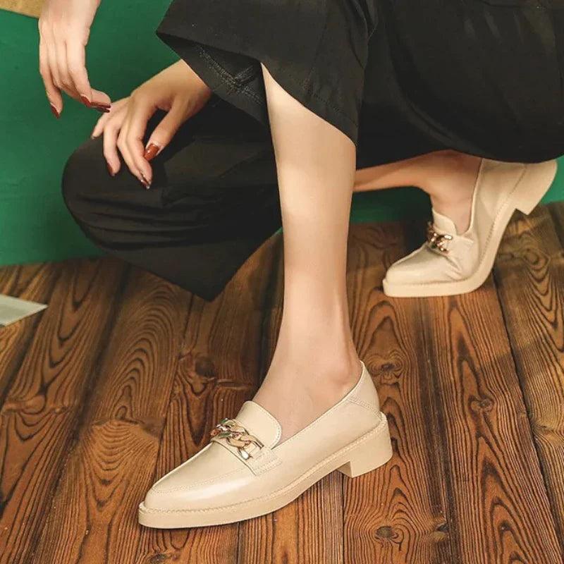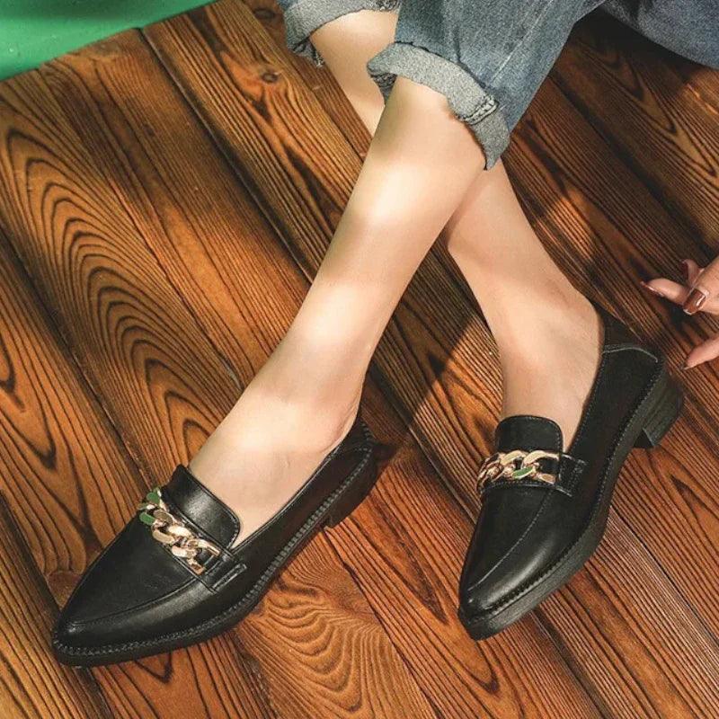 Découvrez les Mocassins Orthopédique femmes à bouts pointus, un choix parfait pour allier sophistication et confort. Leur design élégant, accentué par une chaîne délicate, apporte une touche de raffinement à chaque pas. Que ce soit pour une soirée chic ou une journée au bureau, ces mocassins à talons garantissent une allure impeccable tout en offrant une stabilité exceptionnelle.