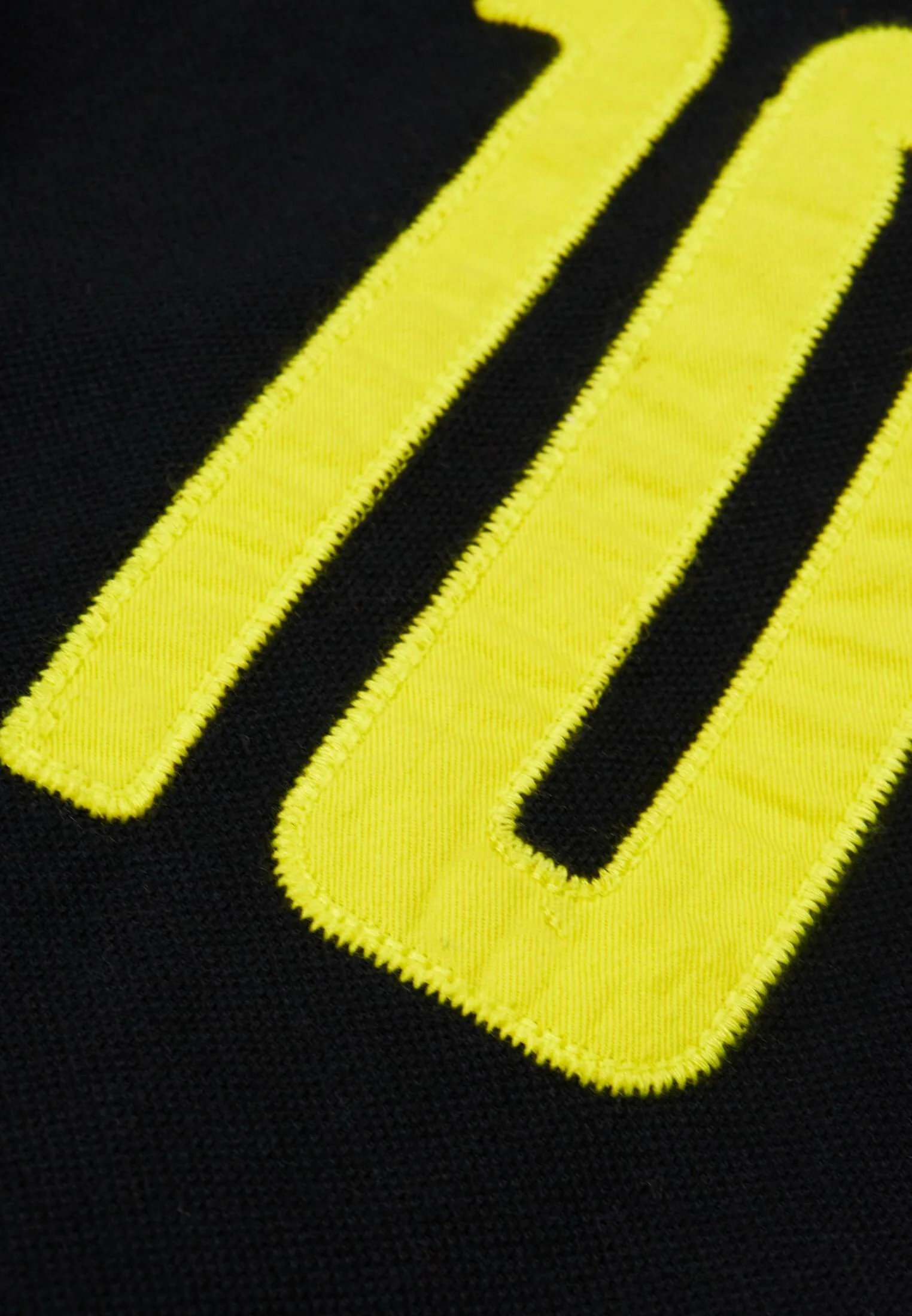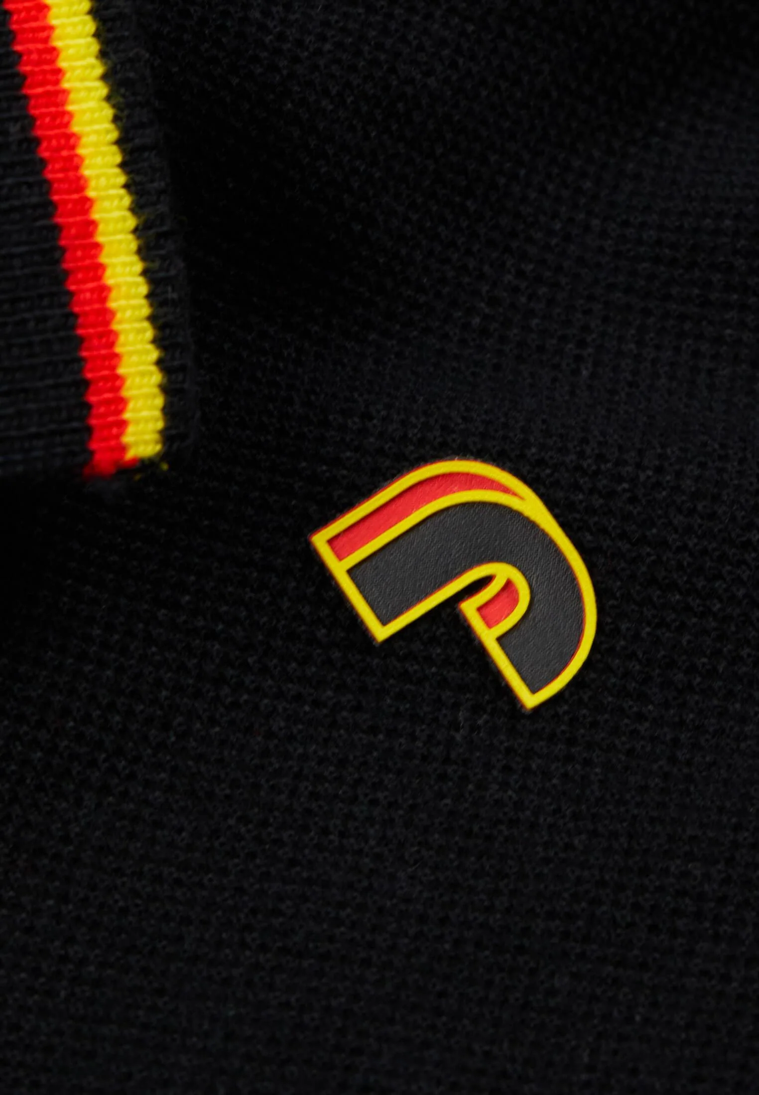 Supporter passionné ou supporter d’un soir, ce polo rouge et noir à longues manches est la pièce à shopper pour afficher fièrement ses couleurs! Le col et le bas des manches sont côtelés et présentent un liseré contrasté. La coupe est droite et le drapeau belge est présent sur la poitrine. Come on Belgium!