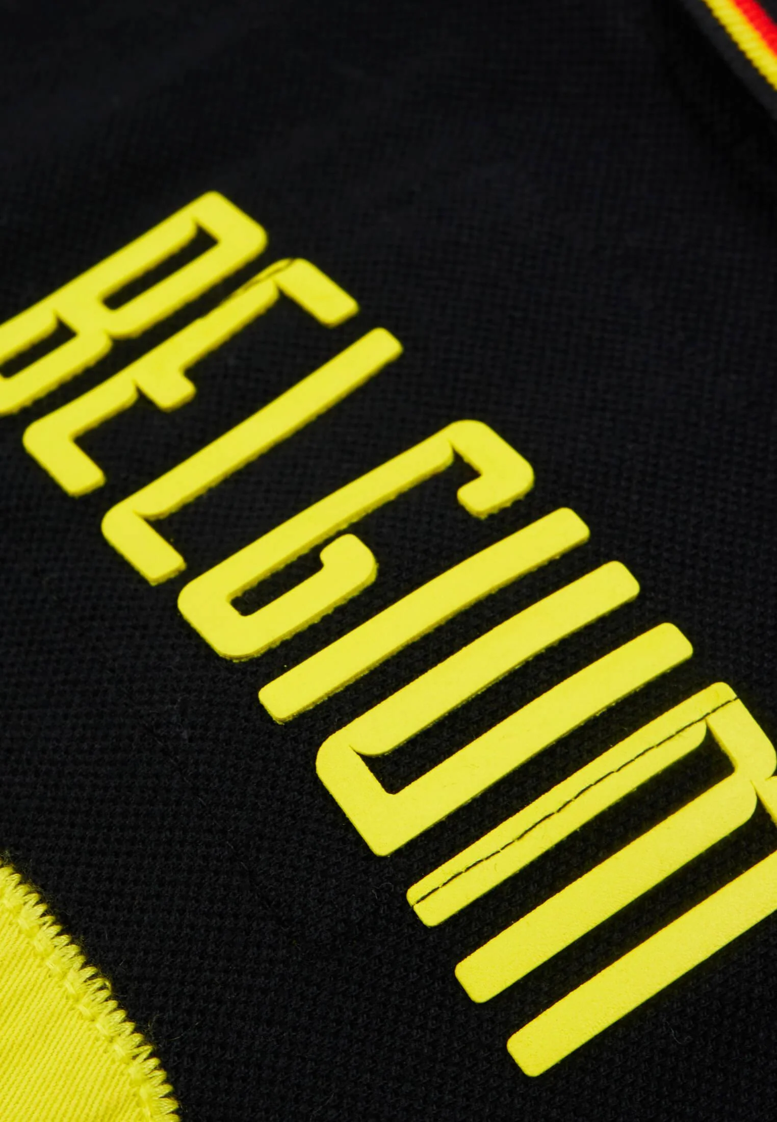 Polo enfant unisexe rouge et noir avec drapeau belge