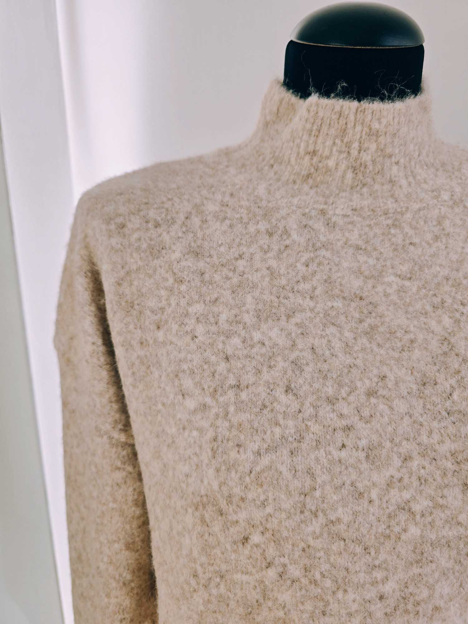 Son col cheminée apporte une touche moderne et élégante, tout en protégeant du froid avec délicatesse. Le motif moucheté, subtil et tendance, donne du relief à la maille et s’accorde facilement à toutes vos tenues, du jean décontracté au pantalon plus habillé.