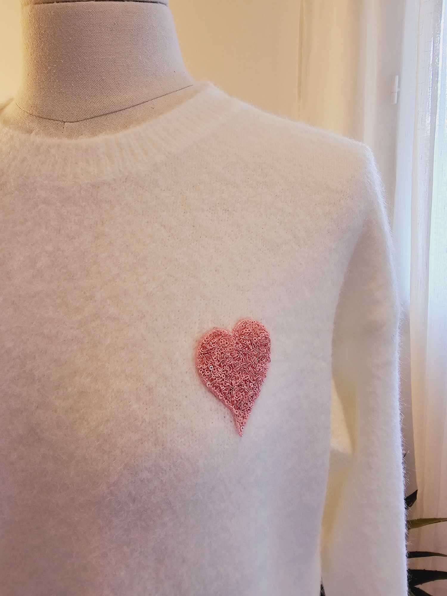 Ce pull extra doux est une véritable invitation au confort et à la douceur. – Extra doux – Enveloppant – Coeur relief poitrine