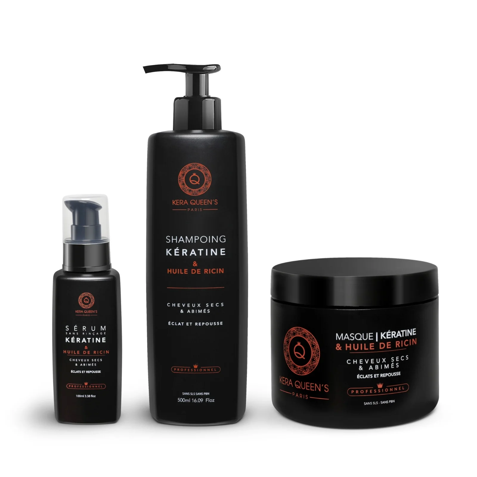 Rituel Kératine et Ricin – Shampoing 500ml + Masque 500ml + Sérum 100ml