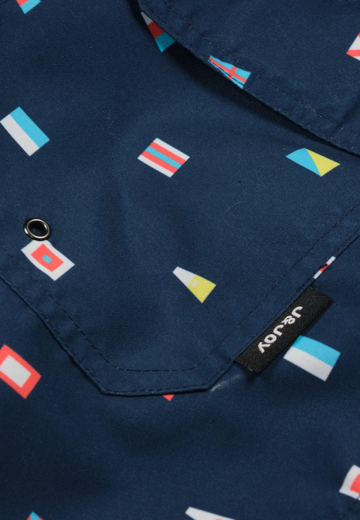 Motifs imprimés drapeaux, taille élastiquée et avec cordon de serrage pour une bonne tenue, ce short maillot sera votre meilleur atout cet été. Il est composé de polyester recyclé « Eco Circle ». Sa fabrication consomme jusqu’à 50% d’énergie et d’émission de dioxyde de carbone en moins qu’avec une fibre standard. 1 maillot = 20 bouteilles en plastique. Ce modèle fait partie des collectors Sails J&JOY.