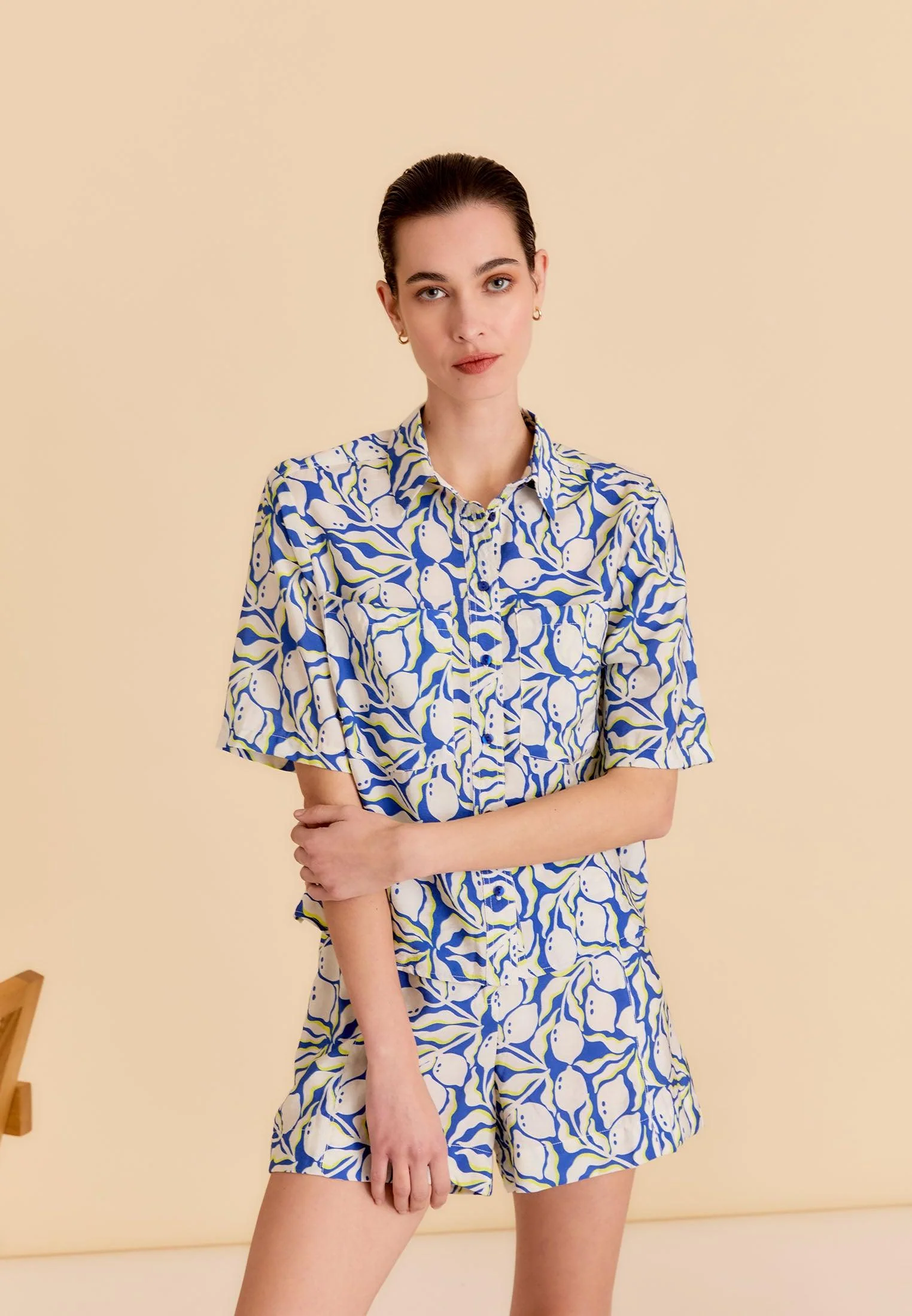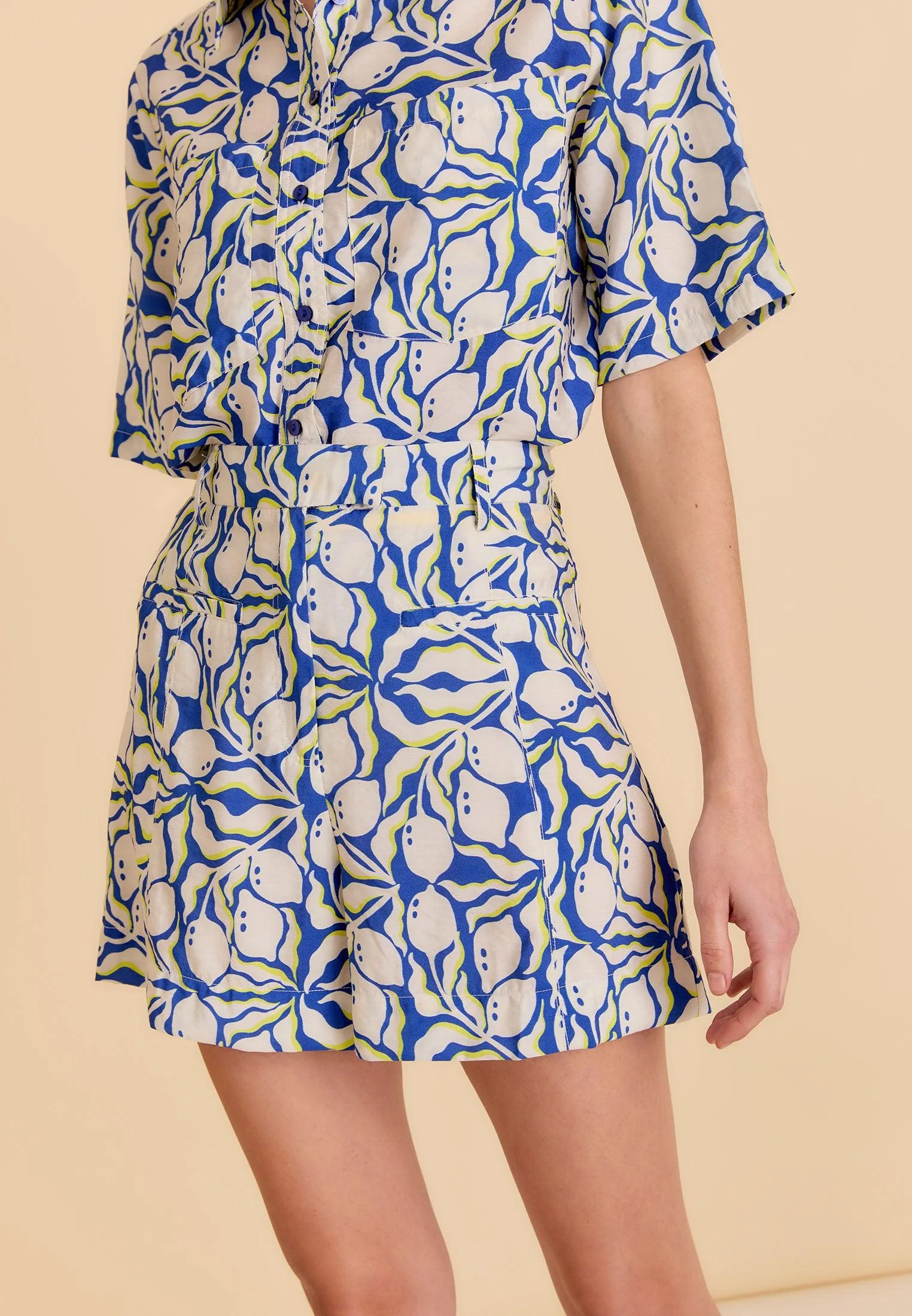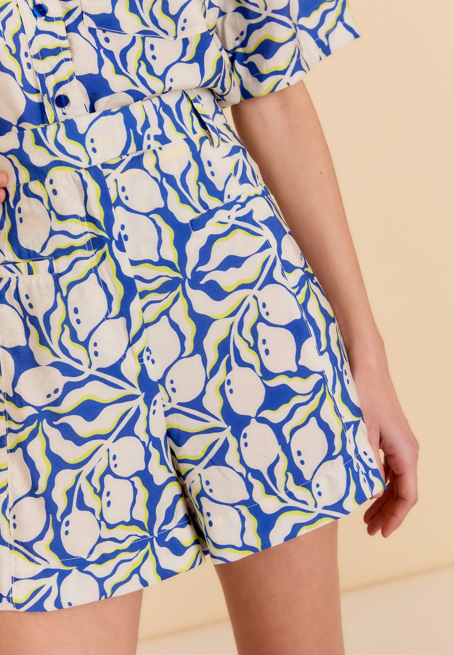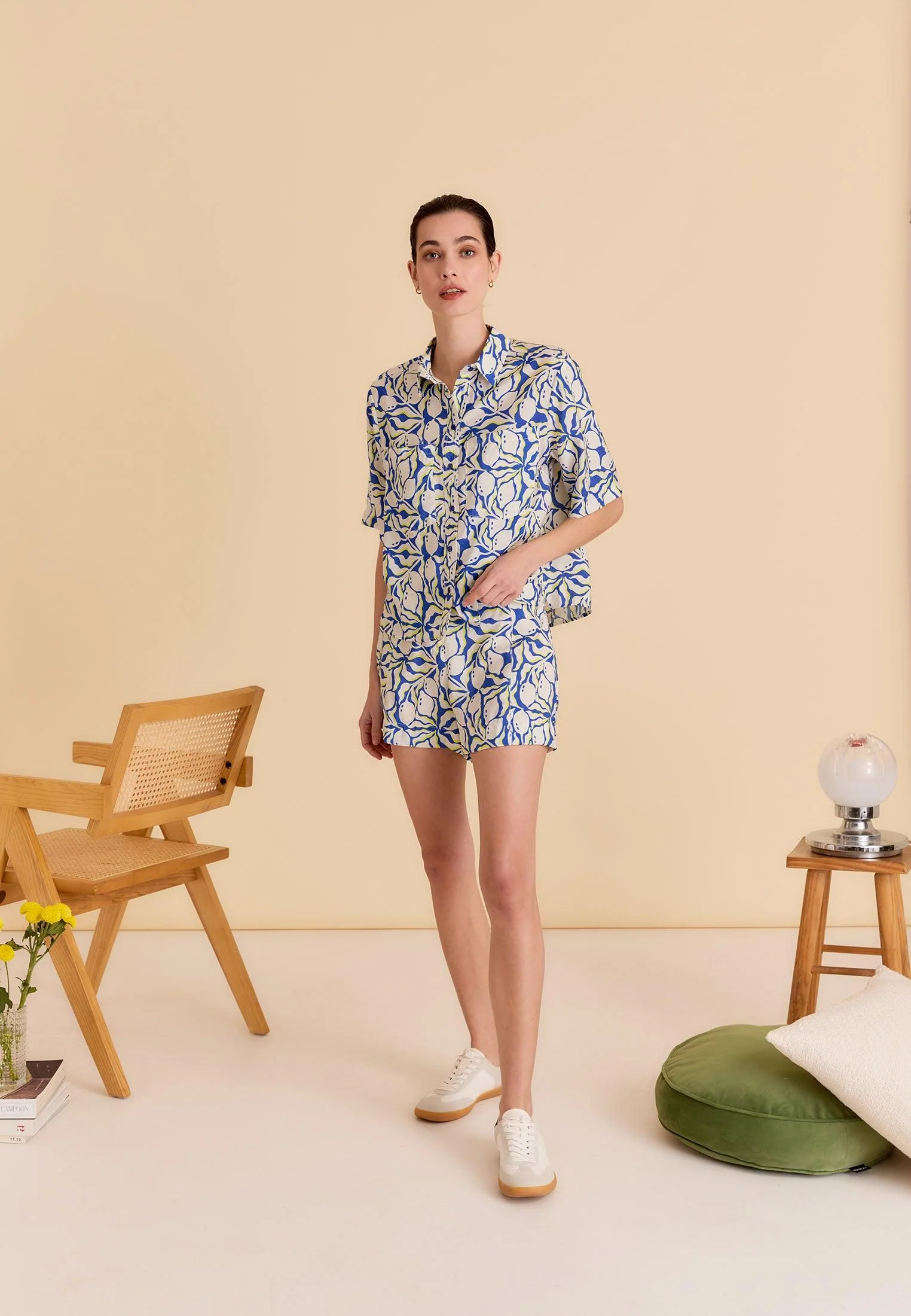 – Short femme au thème Sicilia avec motifs citrons rafraîchissants