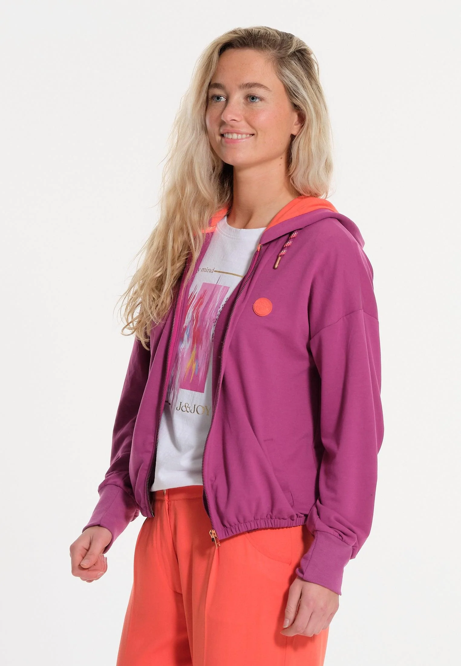 Sweatshirt rose avec tirette et capuche