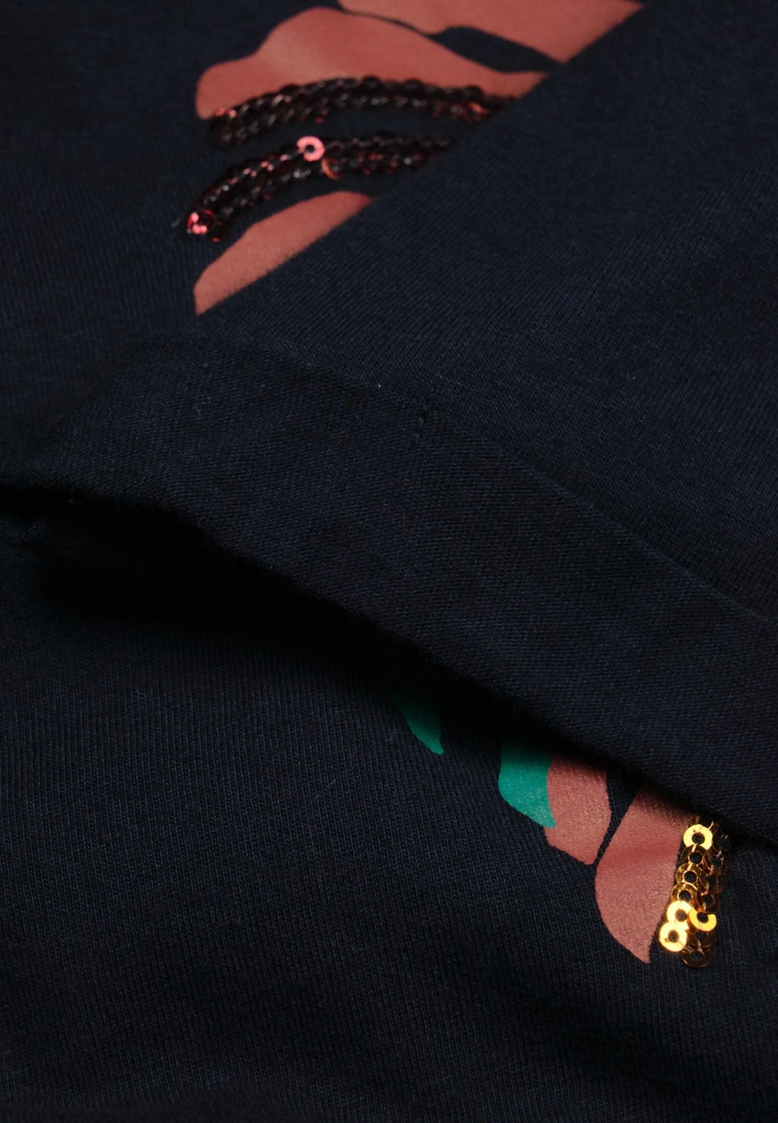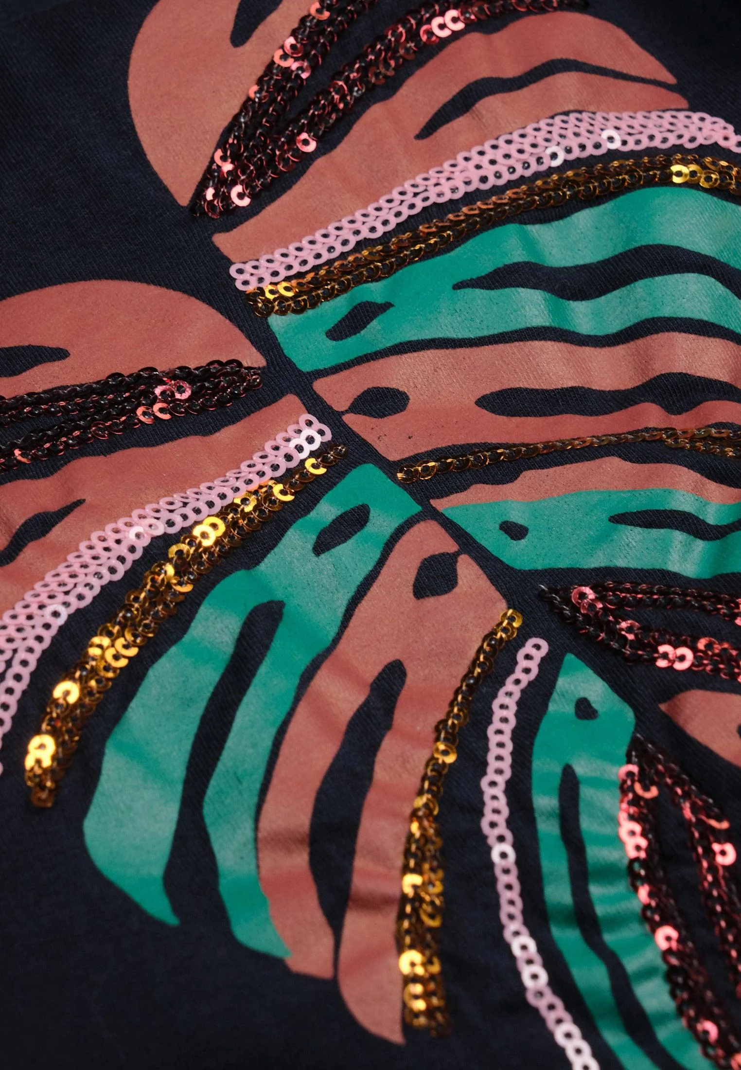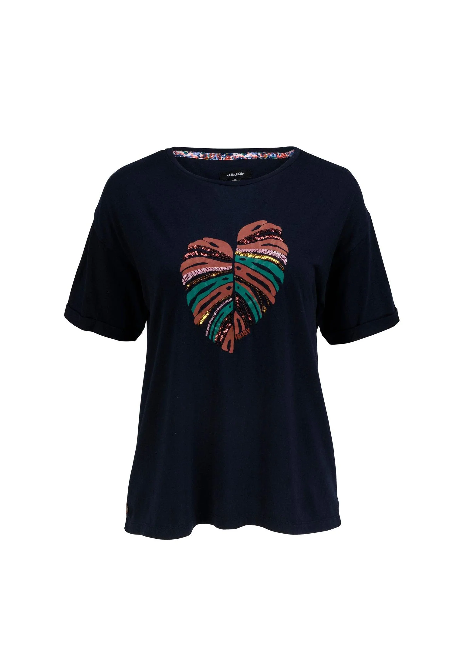 Esprit nature pour ce t-shirt bleu marine à manches courtes. La coupe est droite. Le motif en sequin évoque la beauté de la nature du parc de Joshua Tree en Californie, dont cette collection est inspirée.